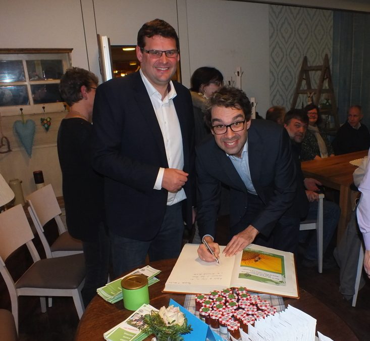 Grund für den Vortrag im „Kleinen Plänkschter“ war die Einladung der GLP, bei der Andre Baumann schon lange Mitglied ist. Bürgermeister Drescher nutzte diese Gelegenheit, um mit Dr. Baumann einige Worte zu wechseln und bat ihn, sich in das Goldene Buch der Gemeinde Plankstadt einzutragen, was dieser gerne tat. Die GLP freut sich mit Dr. Baumann für diese Ehre, die nun schon drei aktuellen grünen Politiker zuteilwurde. Denn neben Umweltstaatssekretär Dr. Andre Baumann konnten sich auch Dr. Danyal Bayaz, MdB, und zuvor Winfried Kretschmann, Ministerpräsident des Landes Baden-Württemberg, in das Goldene Buch eintragen.